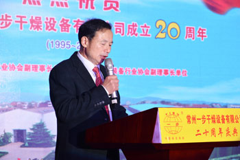 現(xiàn)場開始,首先由常州一步干燥設(shè)備有限公司董事長查國才致辭。二十年來,一步公司緊跟時代步伐,緊抓發(fā)展機(jī)遇,積極拓展業(yè)務(wù),奮力做大做強(qiáng),經(jīng)營業(yè)績突飛猛進(jìn),管理水準(zhǔn)顯著增強(qiáng),品牌戰(zhàn)略屢創(chuàng)佳績,企業(yè)文化碩果累累。他代表一步公司向多年來關(guān)心、支持公司發(fā)展的各級領(lǐng)導(dǎo)、有關(guān)部門、兄弟單位以及社會各界表示誠摯的謝意,也向長期以來為公司兢兢業(yè)業(yè)、辛勤工作的全體員工表示衷心的感謝。同時他表示,將會以一步公司20年的發(fā)展為新起點(diǎn),繼續(xù)發(fā)展壯大,為開創(chuàng)一步更加輝煌燦爛的發(fā)展局面而努力奮斗。